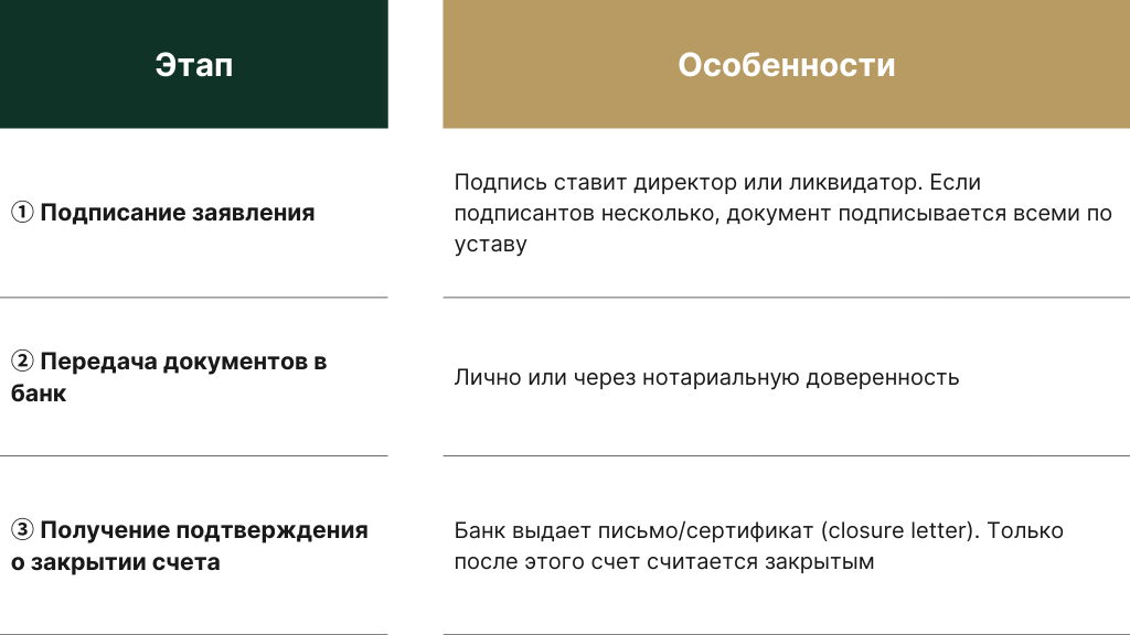 Закрытие счета — обязательный шаг для успешной ликвидации. Без него невозможно получить ликвидационный отчет, требуемый регулятором для аннулирования лицензии.