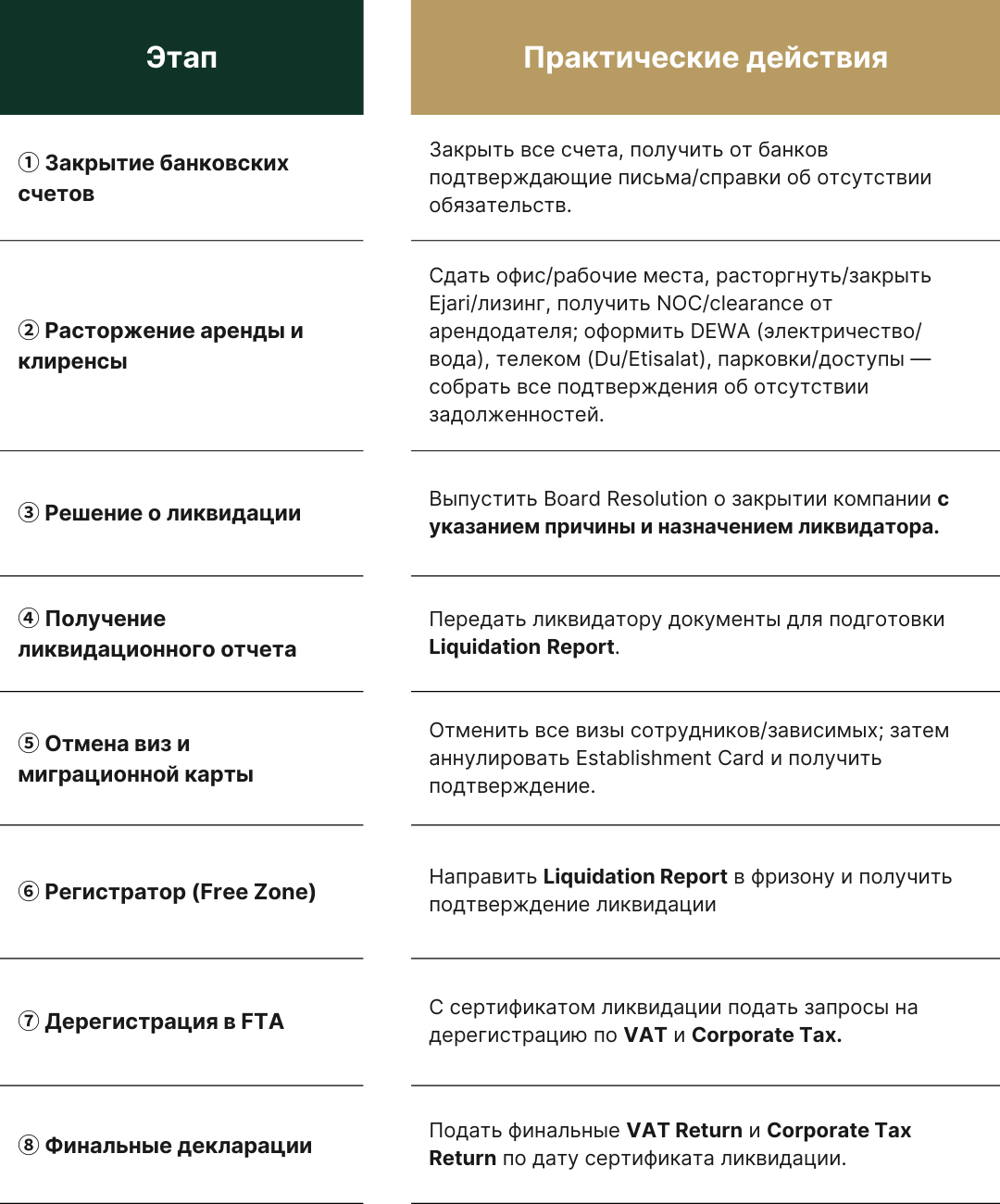 Закрытие бизнеса в Эмиратах может быть как инициативой владельцев, так и требованием регулятора. От причины зависят сроки, пакет документов и юридические последствия.